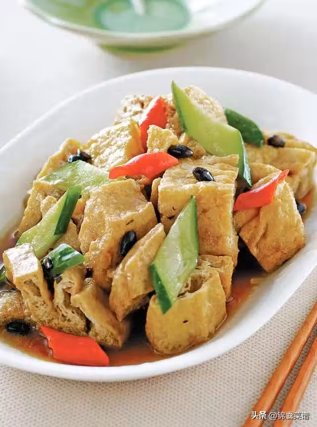 花干 2 塊,豆豉 10 克,小黃瓜片 20 克,紅辣椒片 8 克,水 100 毫升
