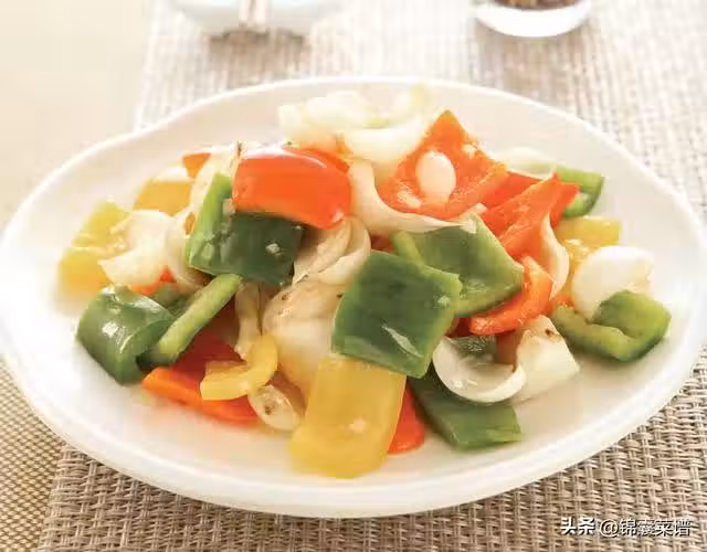 1 鮮百合剝成小片狀;甜椒、青椒洗凈去籽,切小片。