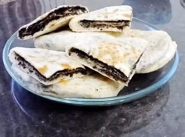 11.再取一個更大的麵皮,加適量紅糖芝麻