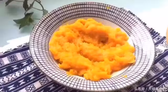 食材準備好之後,我們處理南瓜,南瓜分開買的基本都是一小塊的,去皮後去瓜瓤,然後切成薄片,裝到一個又大又薄的盤子裡面,然後放入蒸鍋中,蒸約10鍾至南瓜完全熟透。南瓜熟了之後,拿出來用一個較硬的湯匙把南瓜壓碎成南瓜泥,越碎越好!