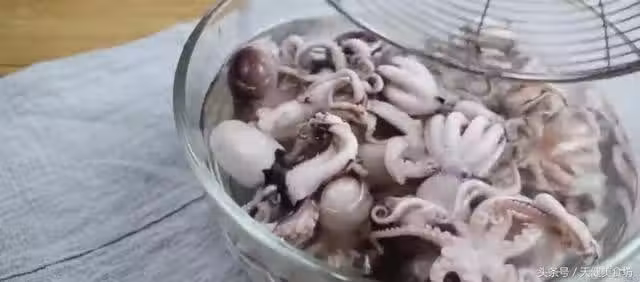 準備一個較大的容器,裝入大量的清水,等八爪魚焯好水之後,用漏勺撈起,裝入容器當中過涼。大家一定要記住啊,過涼水的步驟一定不能少,這樣可以使你的八爪魚口感更好更加的Q彈。過完涼水之後用手把八爪魚清洗乾淨,去掉內膜,去掉骨頭,沒處理乾淨的內臟處理乾淨,最後沖洗乾淨即可!