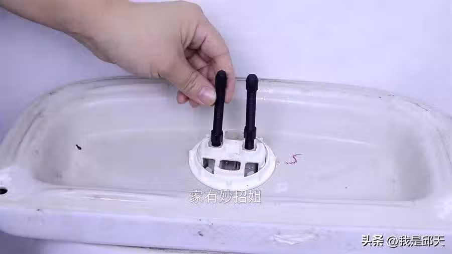 遇到這種情況,解決的方法也非常簡單,我們就可以通過旋動螺母,將兩根螺絲調節到合適的位置,然後再將水箱的蓋子蓋回去。