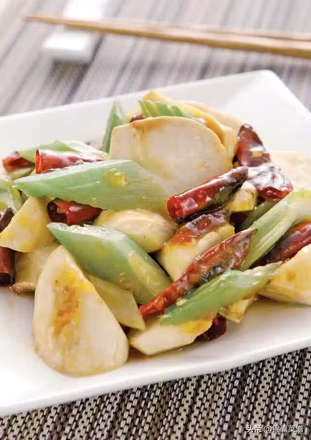 杏鮑菇 150 克,西芹 40 克,干紅辣椒 5 克,薑片 20 克,花椒 2 克