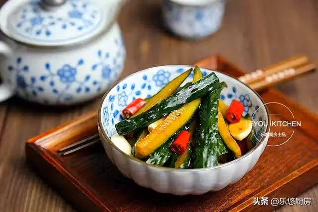 步驟:黃瓜清選乾淨切成粗條。蒜切片、紅辣椒切段。往黃瓜條中放入半勺鹽、1勺白糖然後拌勻,腌制30分鐘。黃瓜腌好後,倒掉腌出來的水。取一隻空碗,放入5勺生抽、1勺老抽、5勺醋、3勺白糖,再將蒜片和辣椒段放入碗中,攪拌均勻。然後把黃瓜和料汁一起倒入保鮮盒中,蓋好蓋子,放到冰箱腌一晚就可以了。