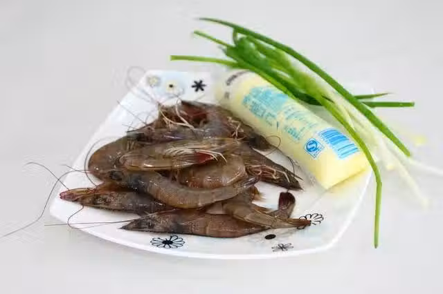 2、蝦清洗乾淨後去掉頭部、蝦殼、蝦線裝乾淨碗中(蝦尾部分的殼建議保留,便於擺盤,小朋友吃的時候直接用手拿方便)