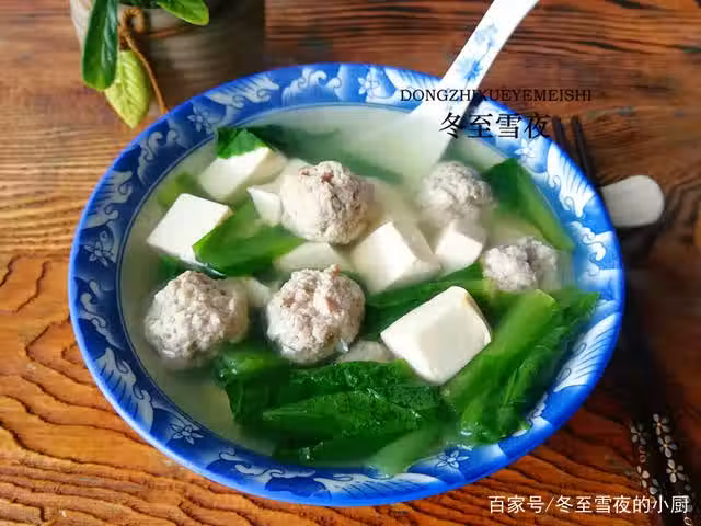 材料:小白菜250克、豆腐1塊、豬肉250克、香油1湯匙、鹽適量、姜1塊、蔥1段、料酒1/2湯匙、白鬍椒粉1茶匙