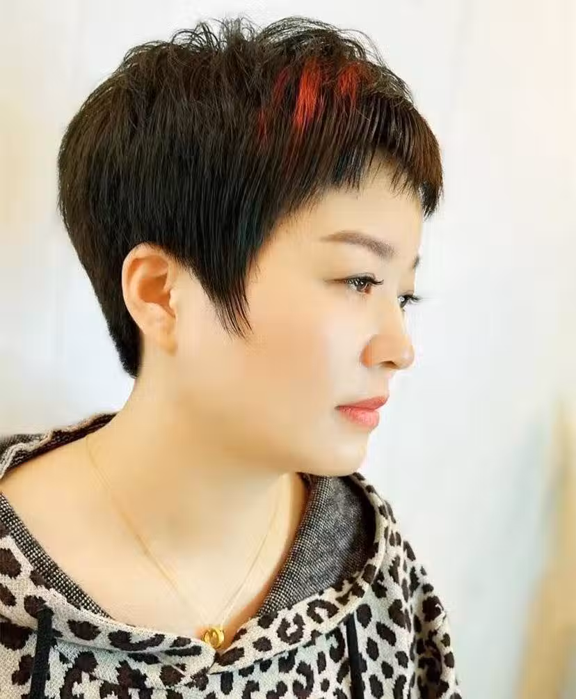 露耳式也是一款不挑年齡的髮型。利落又青春,適合大多數人。不過臉瘦臉長的人不建議剪,會顯得臉更長。