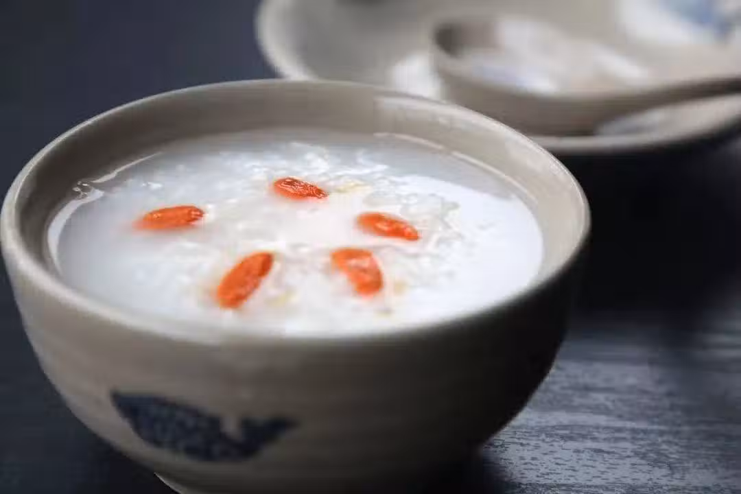 【材料】枸杞20克,山藥30克,桂圓肉10克,大米120克。