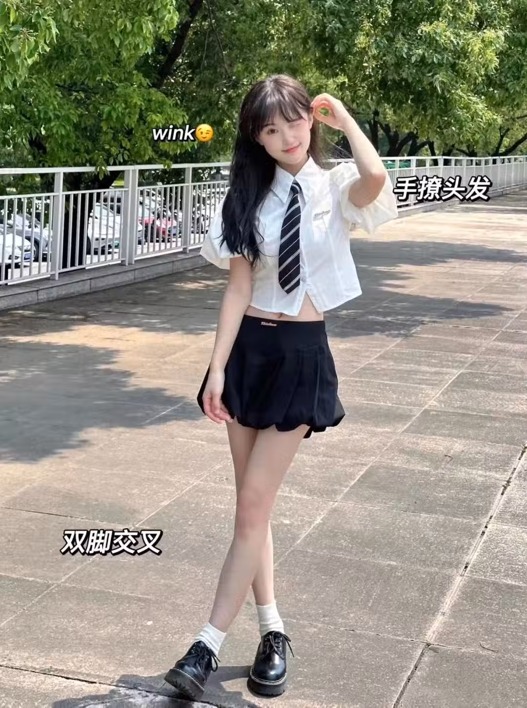 而且,撩發也有很多,單手撩、雙手撩、正面撩、側面撩都可以,為了讓站姿照呈現得更加豐富,還能搭配睜眼閉眼的表情,顯得更加俏皮可愛。