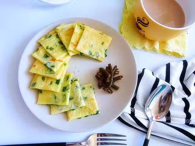 所需材料:粘米粉60克,雞蛋1個,水70克,鹽2克,蔥花適量