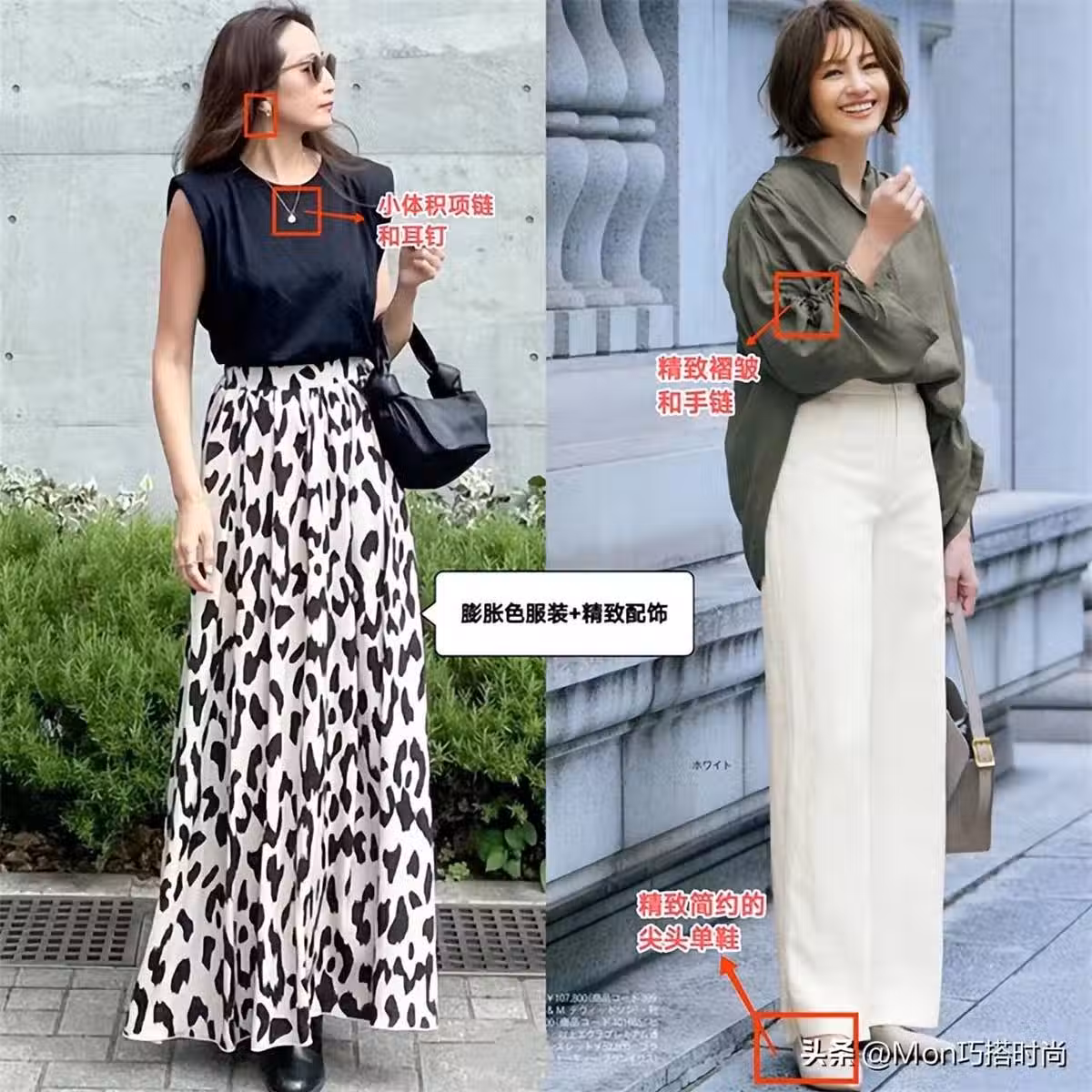 比如同樣一條碎花裙,配硬挺的H型亞麻外套,整體就清爽顯瘦。配貼身的奶奶衫,上衣的軟塌感立馬讓人原地胖五斤!