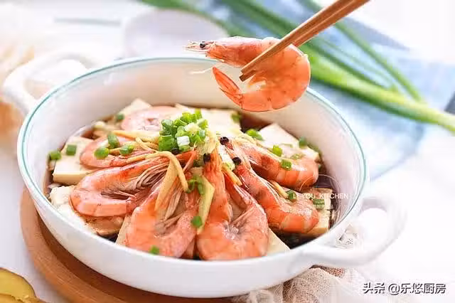 第一步:準備食材。鮮蝦幾隻、豆腐1塊、姜少許、香蔥少許。