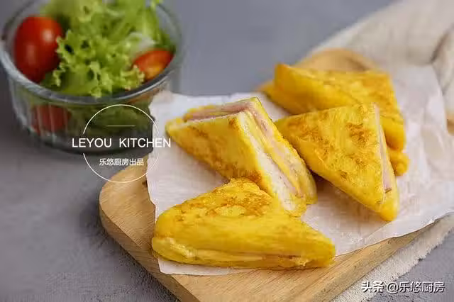 煎到金黃的吐司片,夾著咸香的火腿與半融化的芝士,口感超贊。做著也不難,10分鐘搞定,非常美味又實用。