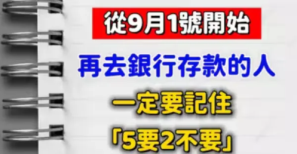 從9月1號開始,再去銀行存款的人,一定要記住「5要2不要」,否則有的哭