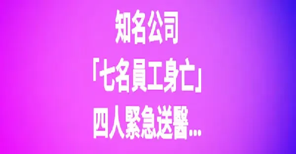 知名公司「七名員工身亡」 四人緊急送醫...