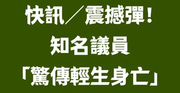 快訊/震撼彈!知名議員「驚傳輕生身亡」