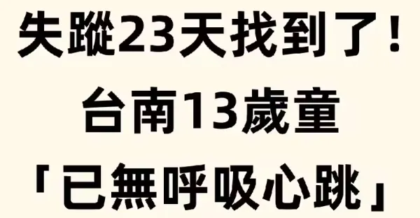 快訊/失蹤23天找到了!台南13歲童「已無呼吸心跳」成冰冷遺體