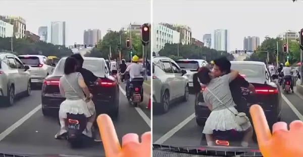 紅燈間隙「前機車男女」狂秀恩愛!綠燈一亮「下場」笑翻全網:報應來了