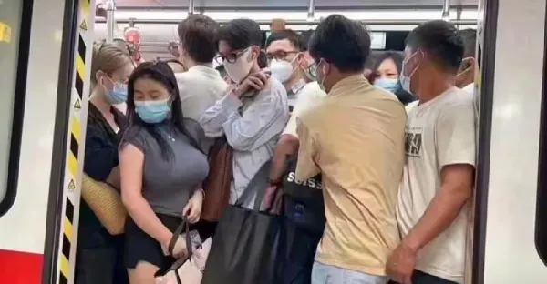 捷運擠爆,無奈和美妹緊貼「下秒就碰到」他機智反應「一招保命」男乘客看1亮點:秒懂