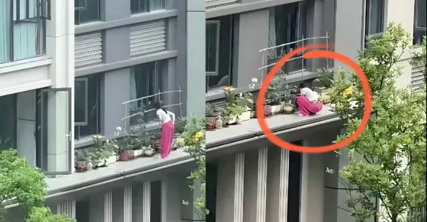 嚇爛!女子在10樓懸空陽台種菜,下一秒她的「1個動作」,讓圍觀群眾集體尖叫!