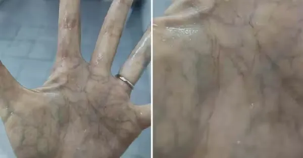 洗完澡驚見手掌「布滿血管如地圖」!網友急喊「1病早期徵兆」:快衝醫院