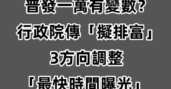 普發一萬還有變數?行政院傳「擬排富」3方向調整 最快時間曝光