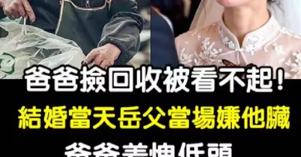 爸爸撿回收被看不起!結婚當天「岳父當場嫌他髒」爸爸羞愧低頭「下秒飯店老闆出來」岳父嚇到跪下道歉