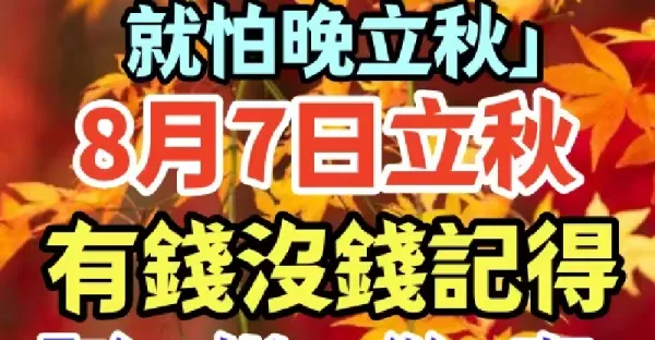 老人家說「不怕閏月秋,就怕晚立秋」,8月7日立秋,有錢沒錢記得「吃4樣,做1事」安康入秋!