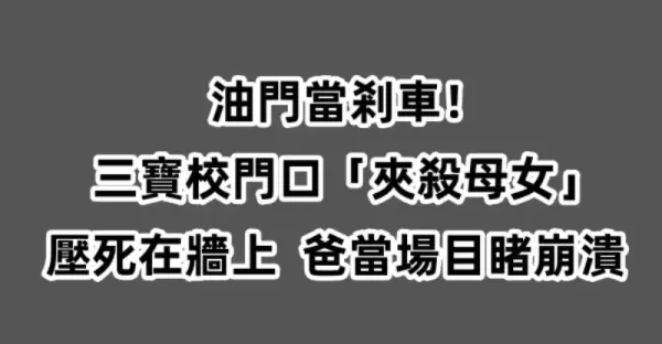 突發/油門當剎車!三寶校門口「夾殺母女」壓死在牆上 爸當場目睹崩潰