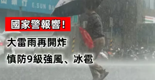 快訊/國家警報響!大雷雨再開炸 慎防9級強風、冰雹