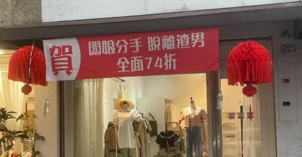 老闆娘分手!!氣憤貼布條「脫離渣男」全面打折 瞄向隔壁「跟著掛布條回應」網笑翻:感情真好~