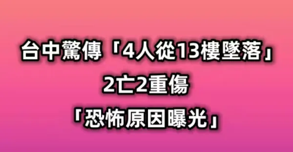 突發/台中驚傳「4人從13樓墜落」!2亡2重傷「恐怖原因曝光!」
