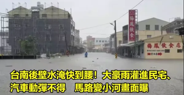 台南後壁水淹快到腰!大豪雨灌進民宅、汽車動彈不得,馬路變小河畫面曝