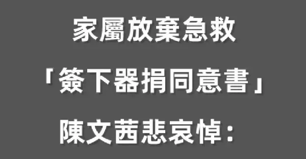 搶救6天不治身亡!家屬放棄急救「簽下器捐同意書」 陳文茜悲哀悼:「一生奉獻給陌生人」