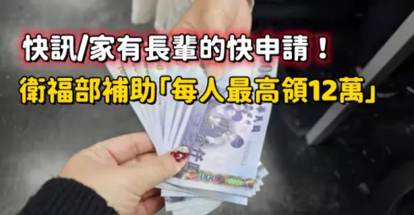 快訊/家有長輩的快申請!衛福部補助「每人最高領12萬」