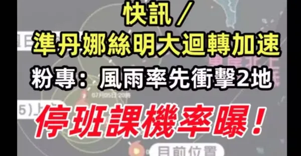 快訊/准丹娜絲明大迴轉加速! 粉專:風雨率先衝擊2地,停班課機率曝...