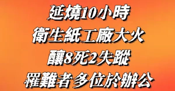 突發/延燒10小時 衛生紙工廠大火釀8死2失蹤 罹難者多位於辦公區