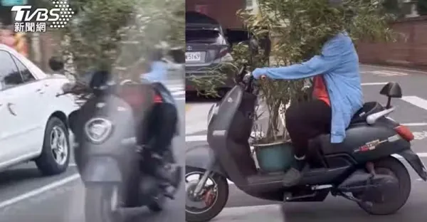 漢光演習提前開始?阿姨變「一棵樹」騎車 秀神級偽裝術