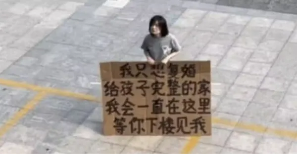 艷陽下跪6小時!單親媽「舉牌求前夫復合」畫面超催淚 沒想到「卻爆出驚人內幕」: 她是自作自受