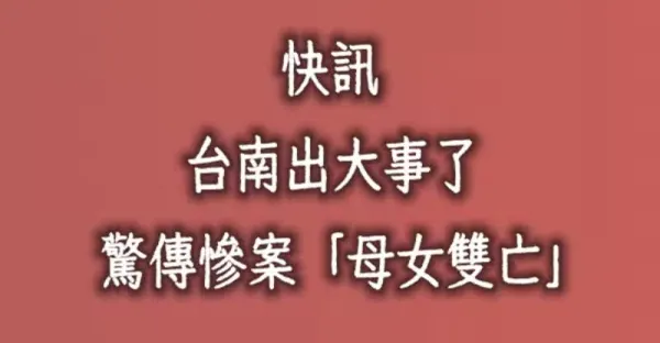 快訊/台南出大事了 驚傳慘案「母女雙亡」
