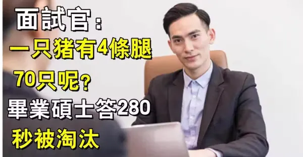 面試官:一隻豬有 4條腿,那 70隻呢? 碩士畢業生秒答 280隻,沒想到直接遭到淘汰!