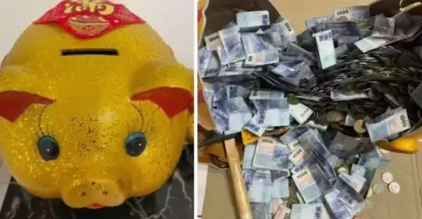 年末殺豬公! 他存一整年「打破豬公畫面超狂」一片藍藍紙鈔海「總額突破6位數」網友全跪了