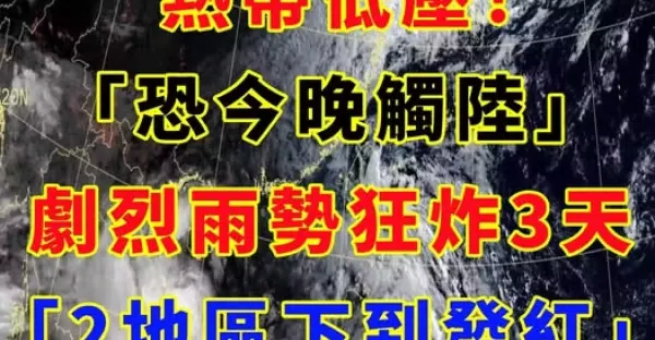 熱帶低壓「恐今晚觸陸」!劇烈雨勢狂炸3天「2地區下到發紅」