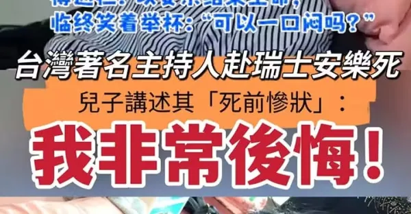 台灣著名主持人赴瑞士安樂死,兒子講述其「死前慘狀」: 我非常後悔!