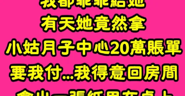 我收入比老公高!婆婆總找我要錢「連買菜錢都要」 有天她拿「小姑月子中心20萬帳單」我回房拿出一張紙