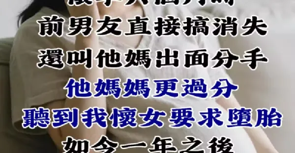 懷孕6個月時,前男友直接搞消失,還叫他媽出面分手!他媽媽更過分「聽到我懷女生」就要求墮胎...如今1年後「得知對方娶了新歡」下場卻讓我爽到翻掉 #人在做天在看