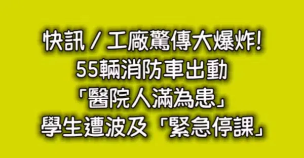 快訊/工廠驚傳大爆炸!55輛消防車出動「醫院人滿為患」學生遭波及「緊急停課」