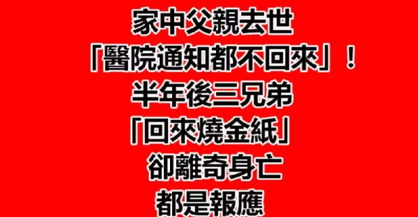 家中父親去世「醫院通知都不回來」!半年後三兄弟「回來燒金紙」卻離奇身亡:都是報應