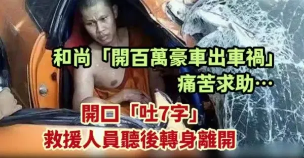 和尚「開百萬豪車出交通事故」痛苦求助…開口「吐7字」救援人員聽後轉身離開!