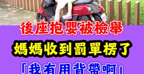 后座抱嬰被檢舉!媽媽收到罰單愣了「我有用背帶啊」掀網友兩派論戰:「誰還敢帶孩子出門」